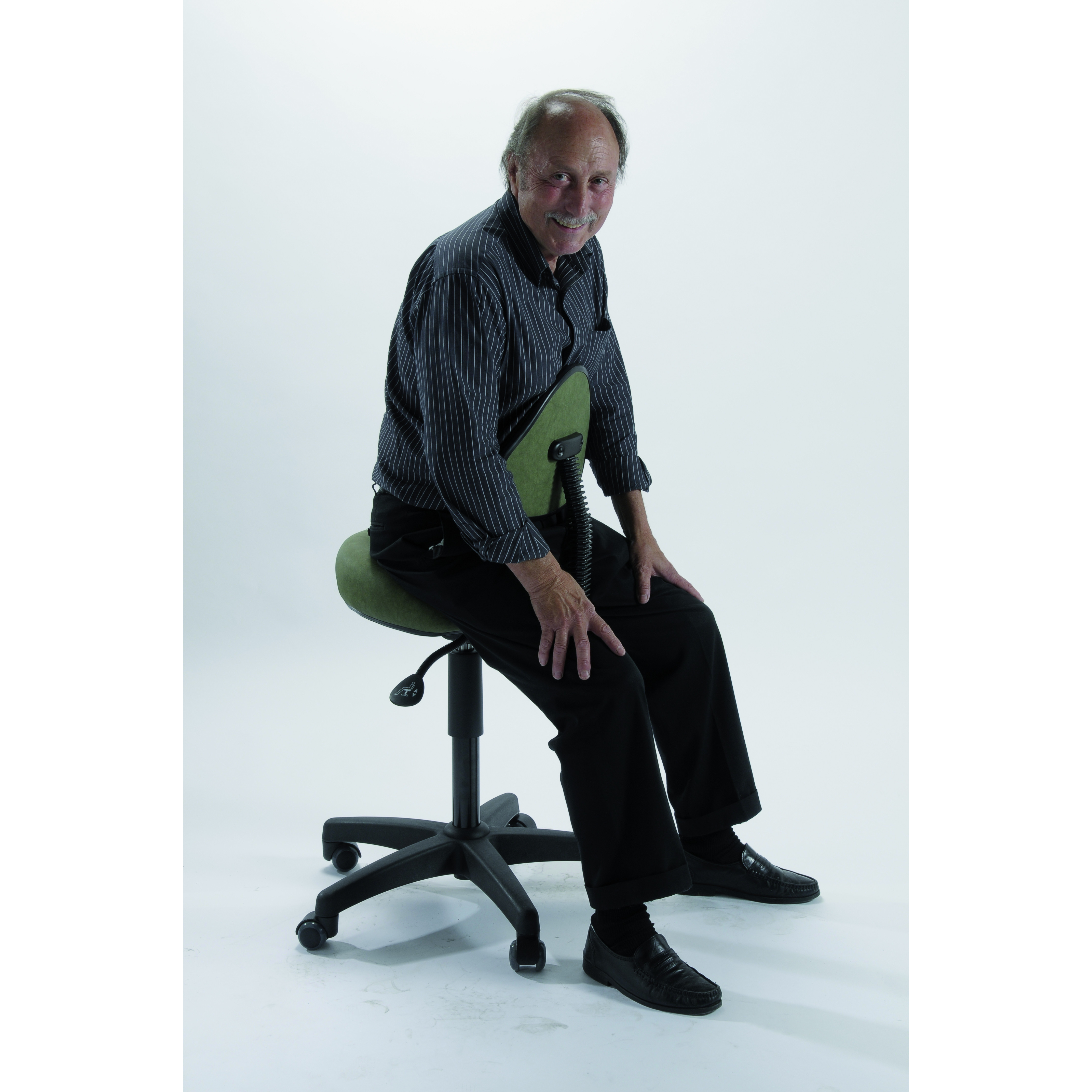 Assise et soutien ventral équipés d’un mécanisme asynchrone permettant le réglage indépendant de l’angle de l’assise (+(5°/-6°) et de l’angle du soutien ventral oblong (+10°/-18°) EN-1335 avec blocage en toute position suivant l’utilisateur, permettant une posture assis debout confortable et ergonomique. Soutien ventral anatomique oscillant réglable en hauteur et inclinaison.